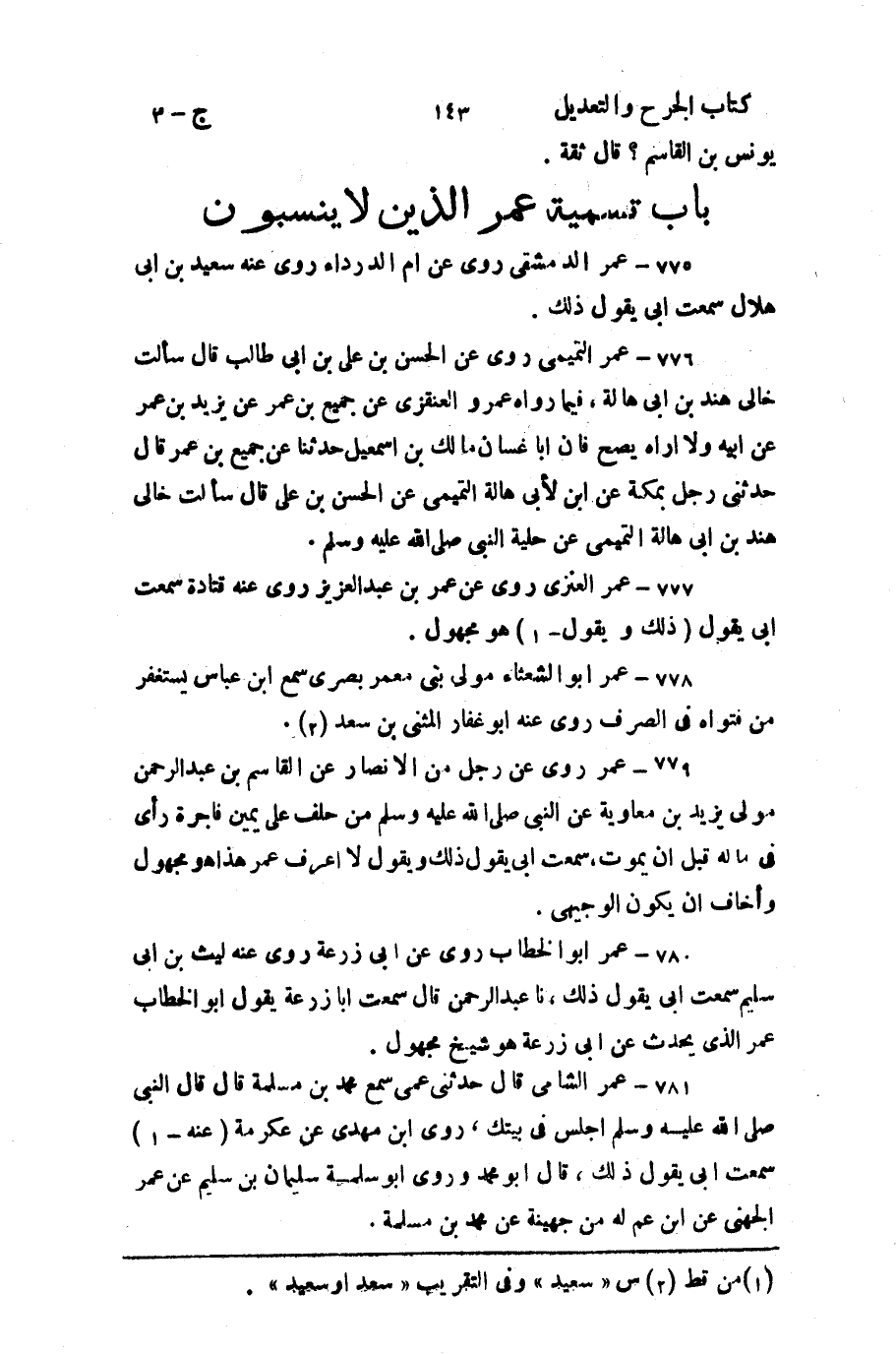 حَدَّثنا عَبد الرَّحمن، قال: سَمِعتُ أَبا زُرعَة يقول: أَبو الخطاب عُمر الذي يحدث عَن أَبي زُرعَة هو شيخ مجهول.