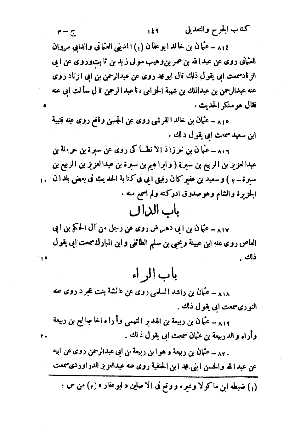 820- عثمان بن ربيعة، وهو ابن ربيعة بن أَبي عَبد الرَّحمن.