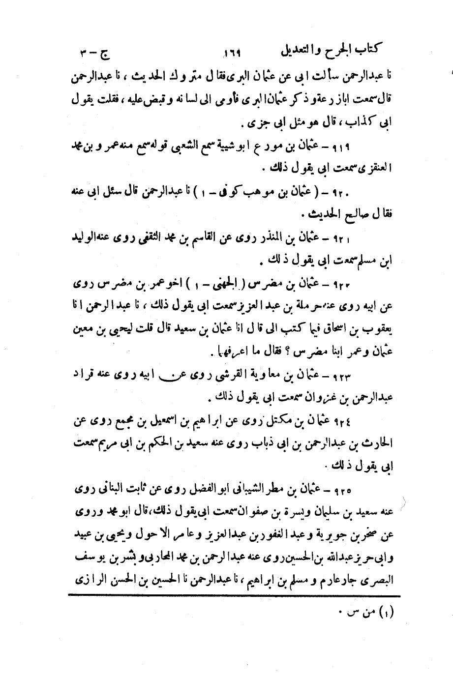 حَدَّثنا عَبد الرَّحمن، أَخبَرنا يعقوب بن إِسحاق، فيما كَتَبَ إلَيَّ، قال: أَخبَرنا عثمان بن سعيد، قال: قلتُ ليحيى بن مَعين: عثمان، وعُمر ابنا مضرس؟ فقال: ما أعرفهما.
