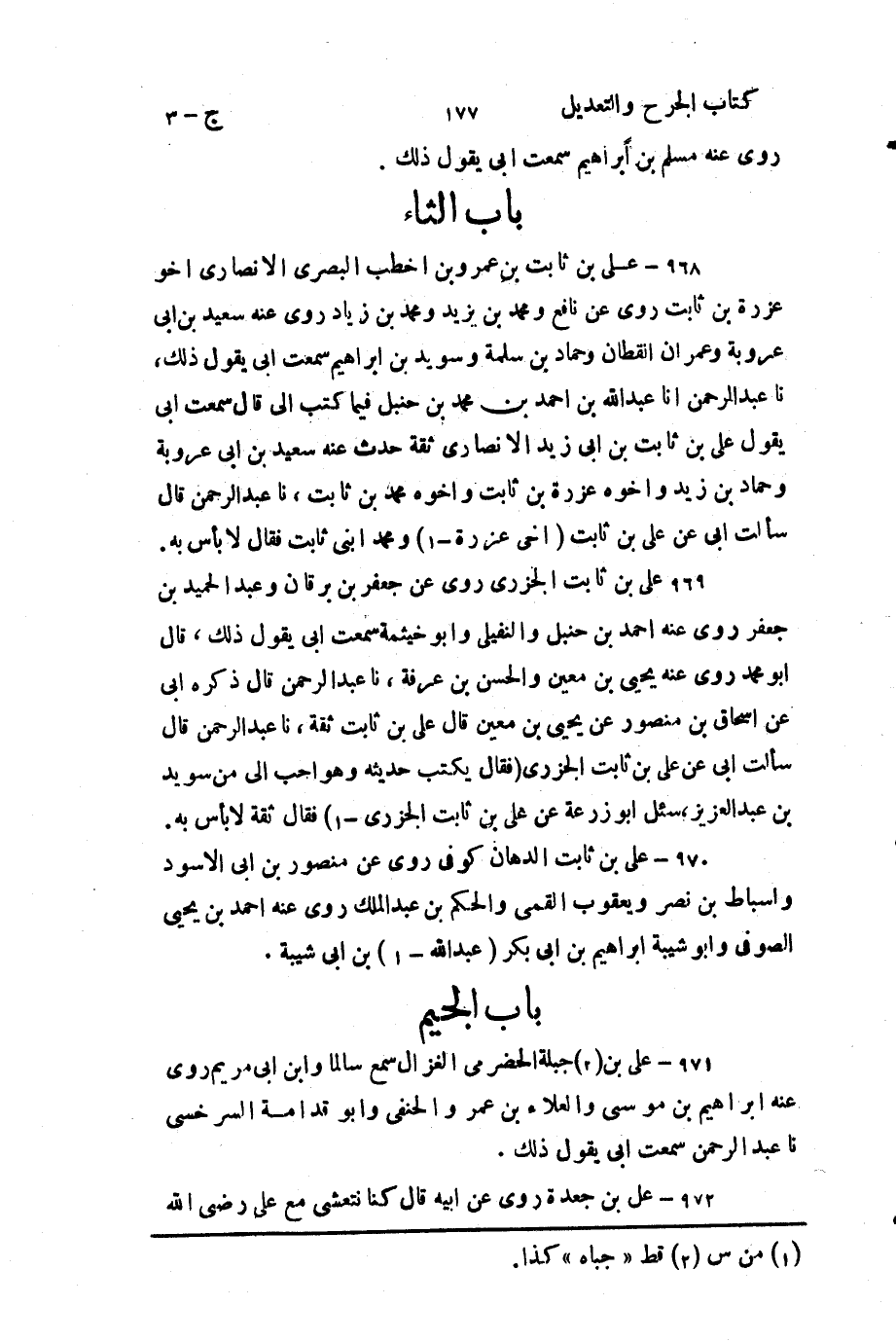 حَدَّثنا عَبد الرَّحمن، قال: سأَلتُ أبي عن عَلي بن ثابت الجزري، فقال: يُكتَبُ حديثُهُ، وهو أَحبُّ إِلَيَّ من سُويد بن عَبد العزيز.