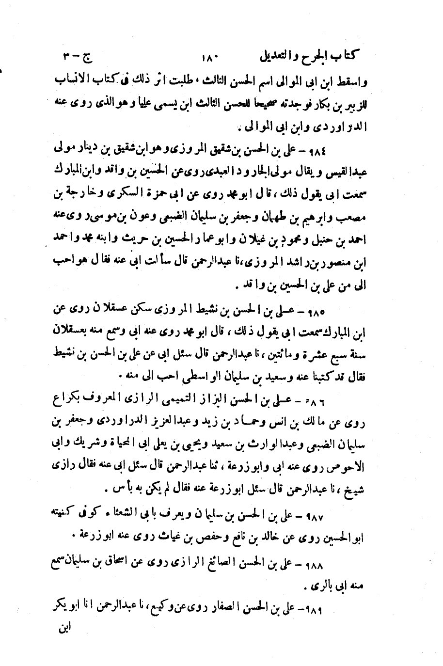 984- عَلي بن الحسن بن شقيق المَرْوَزي، وهو ابن شقيق بن دينار مولى عَبد القيس، ويُقال: مولى الجارود العَبدي.