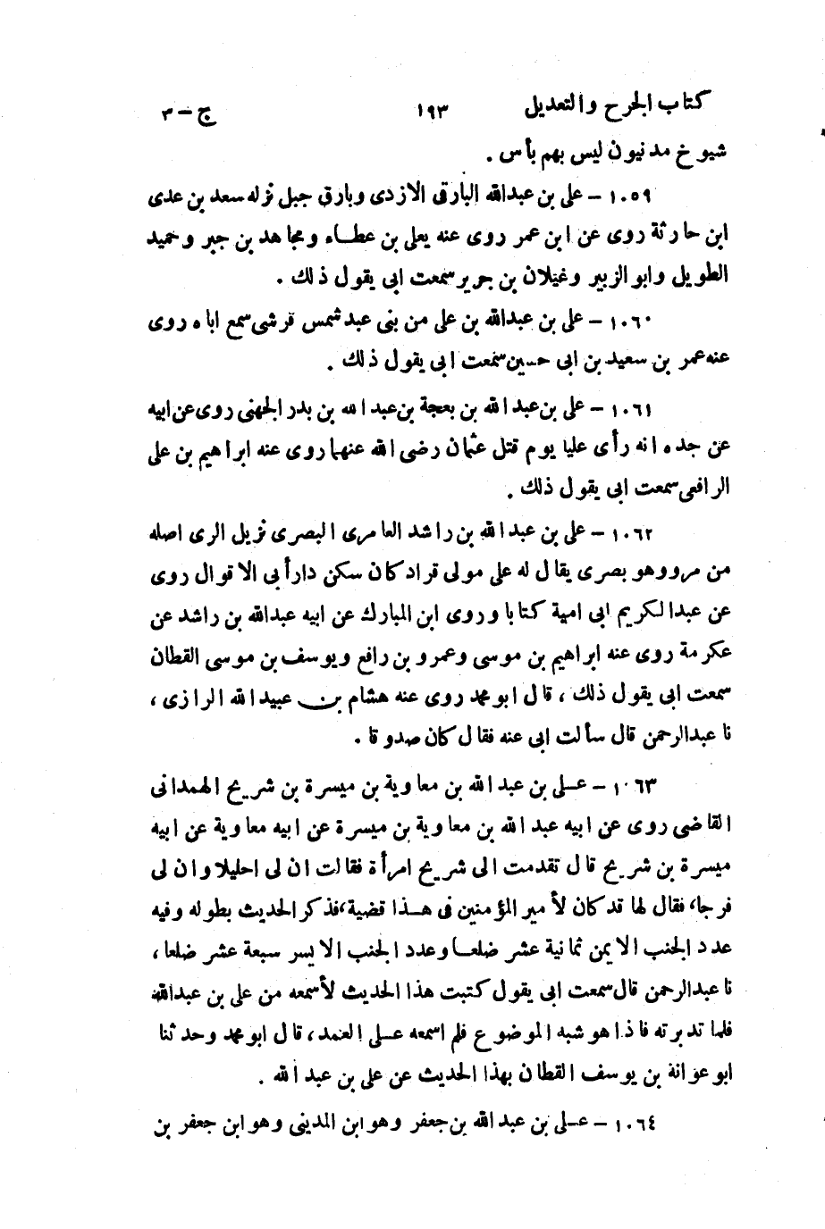 1064- عَلي بن عَبد الله بن جعفر، وهو ابن المَديني، وهو ابن جعفر بن نَجيح السعدي أَبو الحسن، أصله من المدينة.