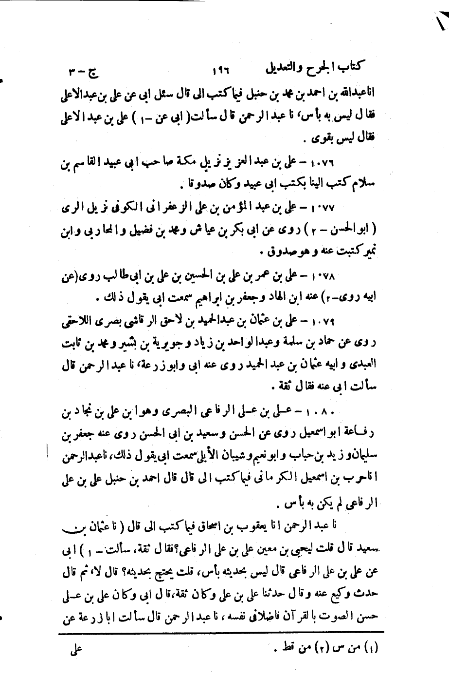 حَدَّثنا عَبد الرَّحمن، أَخبَرنا يعقوب بن إِسحاق، فيما كَتَبَ إلَيَّ، قال: حَدثنا عثمان بن سعيد، قال: قلتُ ليحيى بن مَعين: عَلي بن علي الرفاعي؟ فَقال: ثِقةٌ.
