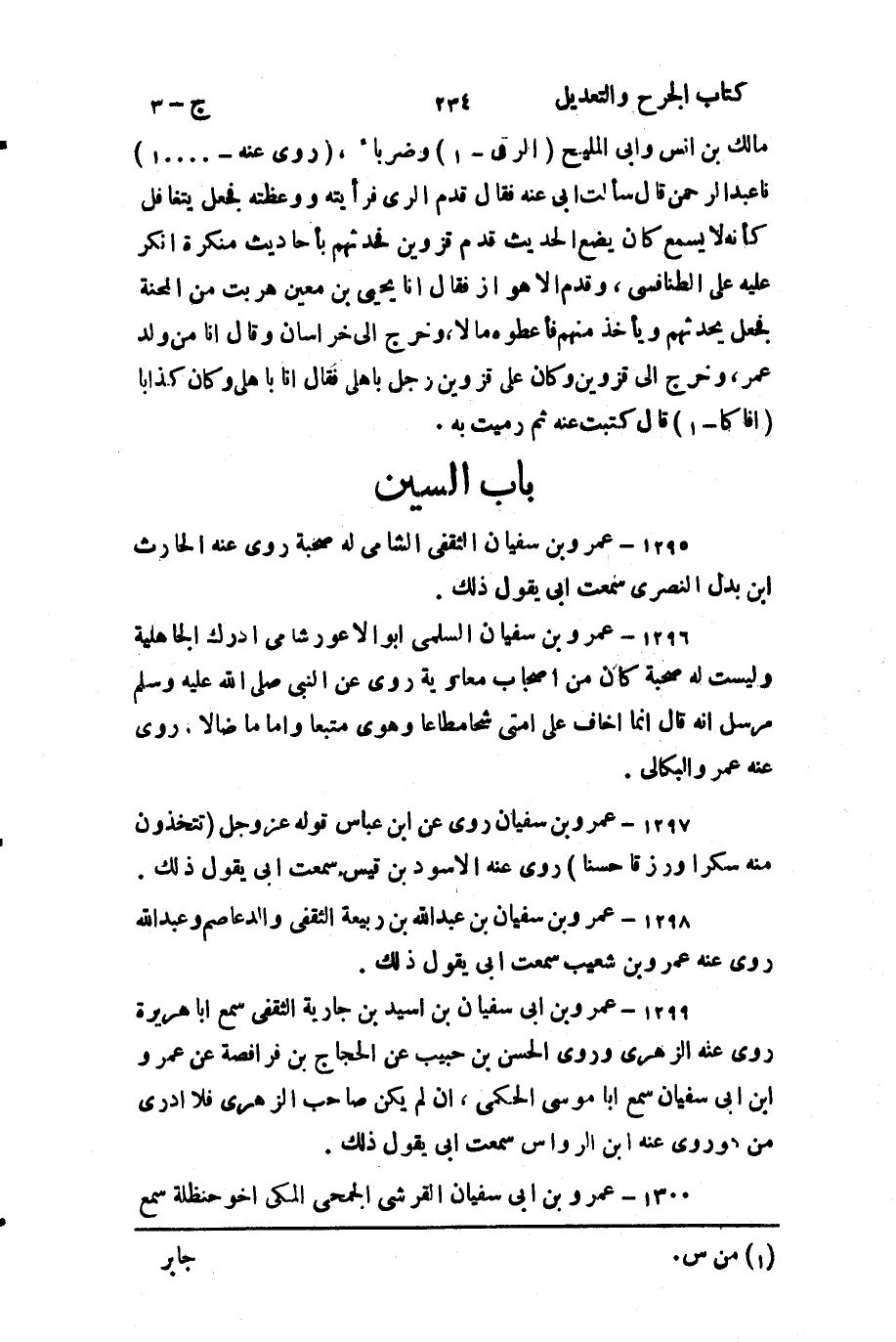 1296- عَمرو بن سُفيان السلمي أَبو الأَعور شامي، أدرك الجاهلية، وليست له صُحبةٌ، كان من أَصحاب معاوية.