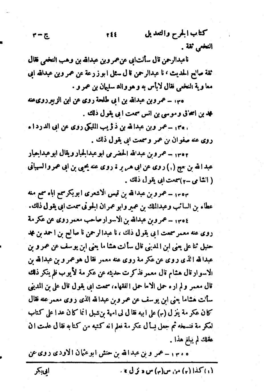 1352- عَمرو بن عَبد الله الحضرمي أَبو عَبد الجبار، ويُقال: أَبو عَبد الجبار عَبد الله بن معج.