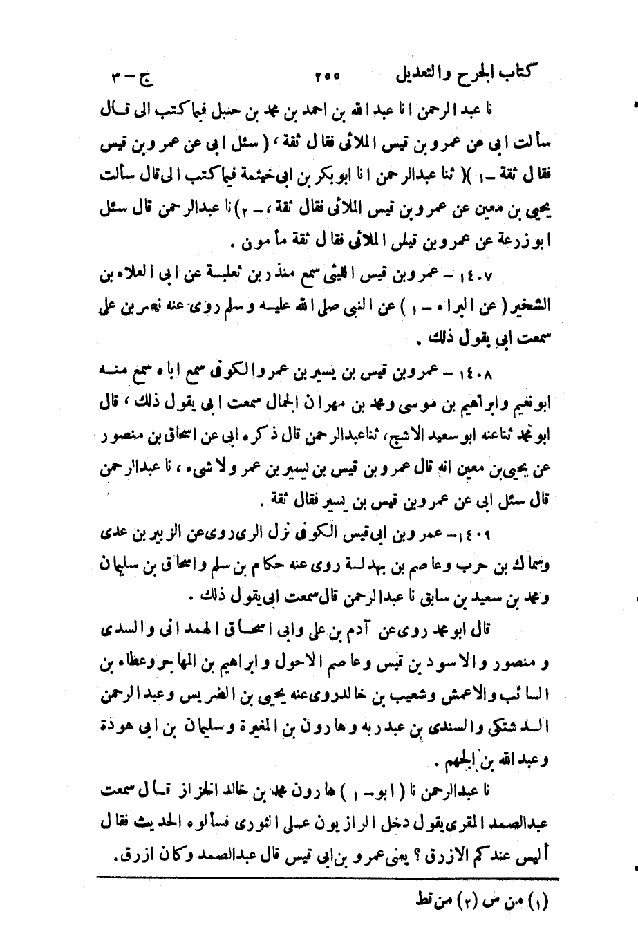 حَدَّثنا عَبد الرَّحمن، حَدَّثنا أَبو هارون محمد بن خالد الخزاز، قال: سَمِعتُ عَبد الصمد المُقرِئ يقول: دخل الرازيون على الثَّوري فسألوه الحديث، فقال: أليس عندكم الأَزرق، يَعني عَمرو بن أَبي قيس؟ قال عَبد الصمد: وكان أزرق.