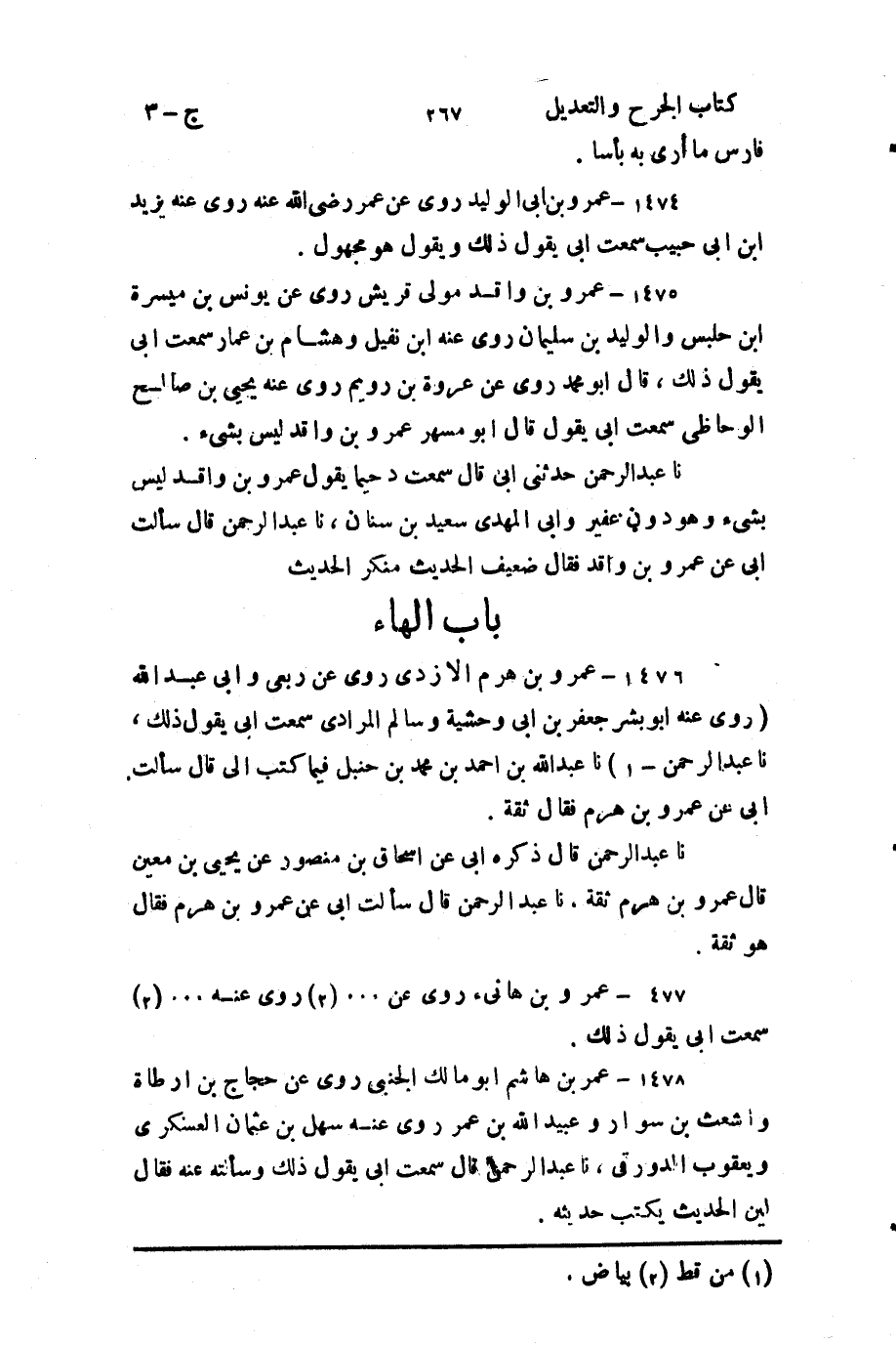 حَدَّثنا عَبد الرَّحمن، قال: ذَكَرَهُ أَبي، عَن إِسحاق بن منصور، عَن يَحيَى بن مَعين، قال: عَمرو بن هرم ثقة.