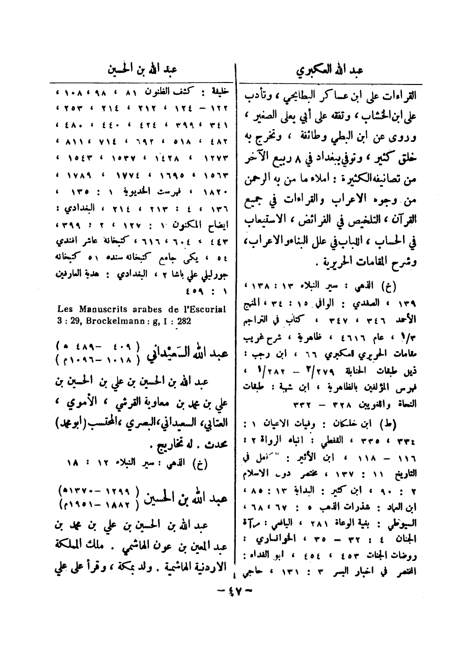 (خ) الذهبي: سير النبلاء 12: 18 عبد الله بن الحسين (1299 - 1370 هـ) (1882 - 1951 م) عبد الله بن الحسين بن علي بن محمد بن عبد المعين بن عون الهاشمي.