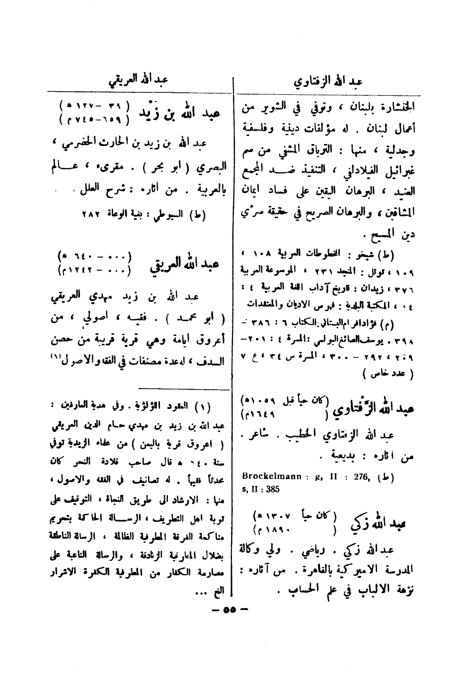 (ط) , 276: Brockelmann: g , II 385: s , II عبد الله زكي (كان حيا 1307 هـ) (1890 م) عبد الله زكي.