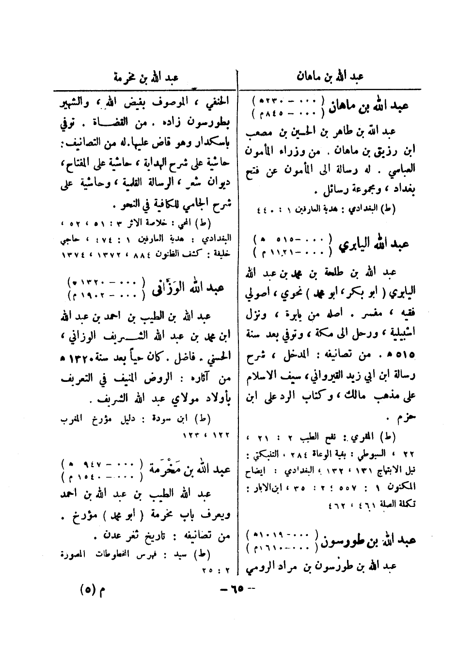 122، 123 عبد الله بن مخرمة (000 - 947 هـ) (000 - 1540 م) عبد الله الطيب بن عبد الله بن احمد ويعرف باب مخرمة (أبو محمد) مؤرخ.