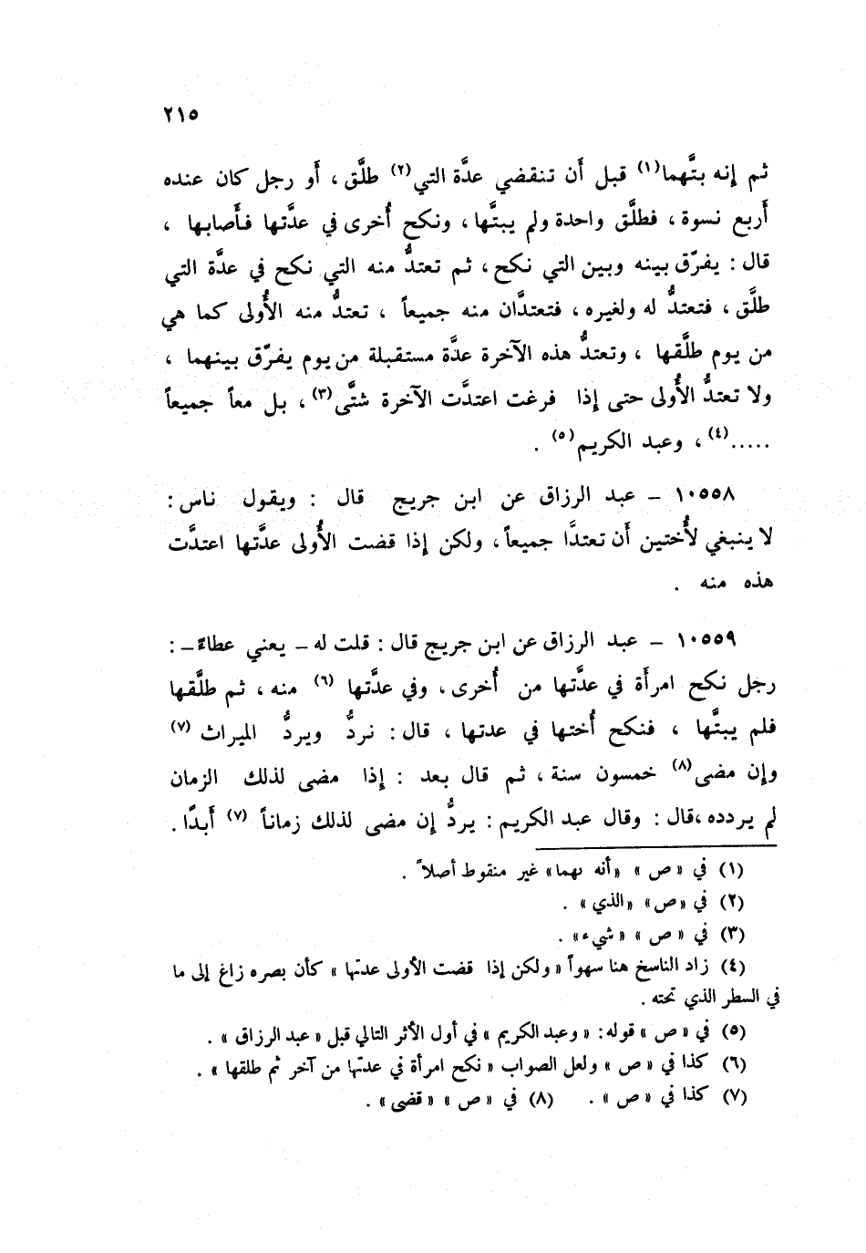 ١٠٥٥٩ - عَنِ ابْنِ جُرَيْجٍ قَالَ: قُلْتُ لَهُ - يَعْنِي عَطَاءً: رَجُلٌ نَكَحَ امْرَأَةً فِي عِدَّتِهَا مِنْ أُخْرَى، وَفِي عِدَّتِهَا مِنْهُ، ثُمَّ طَلَّقَهَا فَلَمْ يَبُتَّهَا، فَنَكَحَ أُخْتَهَا فِي عِدَّتِهَا قَالَ: «نَرُدُّ وَيَرُدُّ الْمِيرَاثَ، وَإِنْ مَضَى خَمْسُونَ سَنَةً»، ثُمَّ قَالَ بَعْدُ: إِذَا مَضَى لِذَلِكَ الزَّمَانُ لَمْ يَرْدُدْهُ " قَالَ: وَقَالَ عَبْدُ الْكَرِيمِ: «يُرَدُّ إِنْ مَضَى لِذَلِكَ زَمَانٌ أَبَدًا»