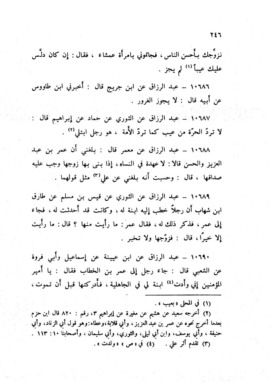 ١٠٦٨٧ - عَنِ الثَّوْرِيِّ، عَنْ حَمَّادٍ، عَنْ إِبْرَاهِيمَ قَالَ: «لَا تُرَدُّ الْحُرَّةُ مِنْ عَيْبٍ كَمَا تُرَدُّ الْأَمَةُ، هُوَ رَجُلٌ ابْتُلِيَ»