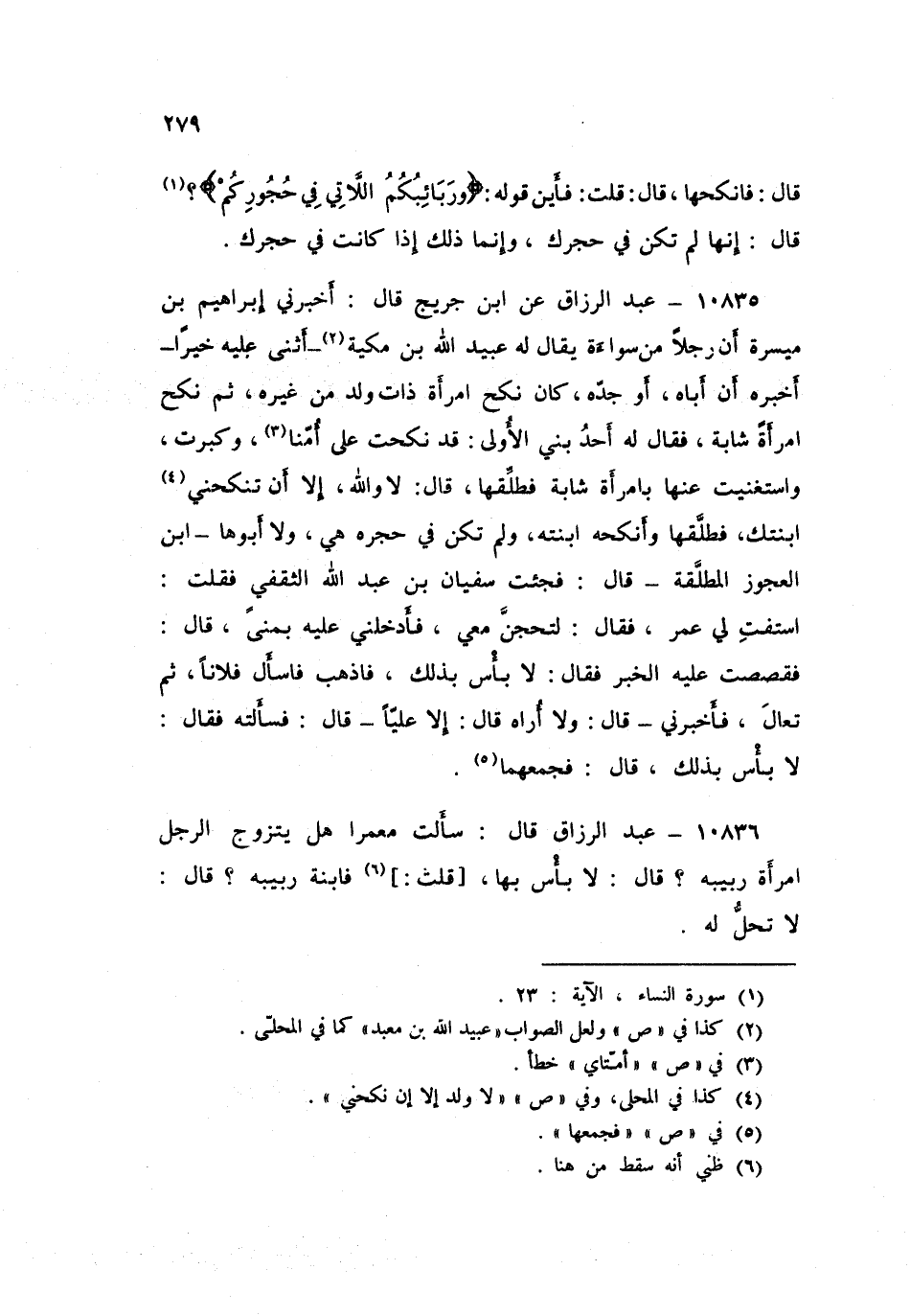 عَبْد ُ الرَّزَّاقِ، سَأَلْتُ مَعْمَرًا: هَلْ يَتَزَوَّجُ الرَّجُلُ امْرَأَةَ رَبِيبِهِ؟ قَالَ: «لَا بَأْسَ بِهَا»، قُلْتُ: فَابْنَةَ رَبِيبِهِ قَالَ: «لَا تَحِلُّ لَهُ»
