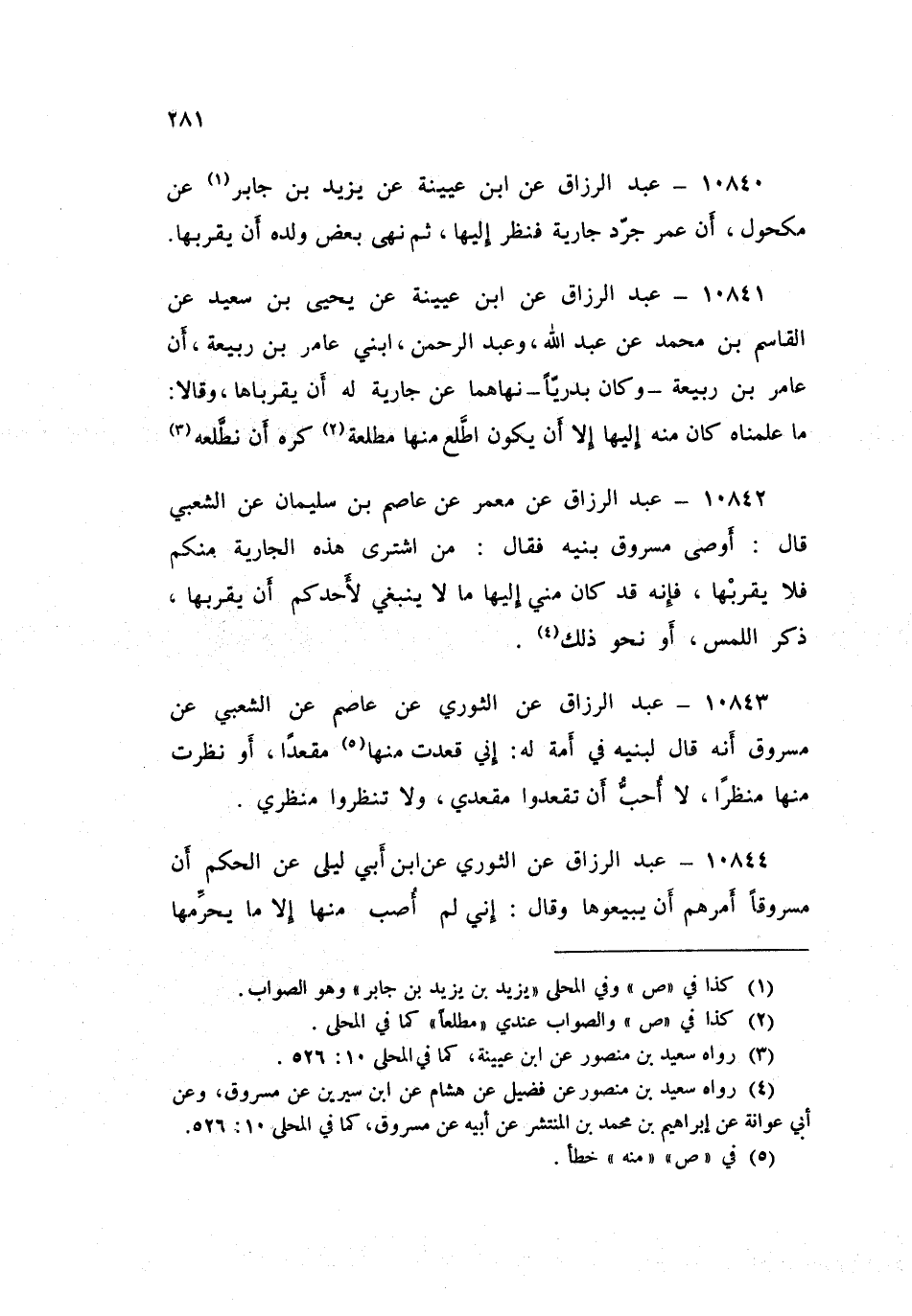 ١٠٨٤٣ - عَنِ الثَّوْرِيِّ، عَنْ عَاصِمٍ، عَنِ الشَّعْبِيِّ، عَنْ مَسْرُوقٍ، أَنَّهُ قَالَ لِبَنِيهِ فِي أَمَةٍ لَهُ: «إِنِّي قَعَدْتُ مِنْهَا مَقْعَدًا، أَوْ نَظَرْتُ مِنْهَا مَنْظَرًا، لَا أُحِبُّ أَنْ تَقْعُدُوا مَقْعَدِي، وَلَا تَنْظُرُوا مَنْظَرِي»