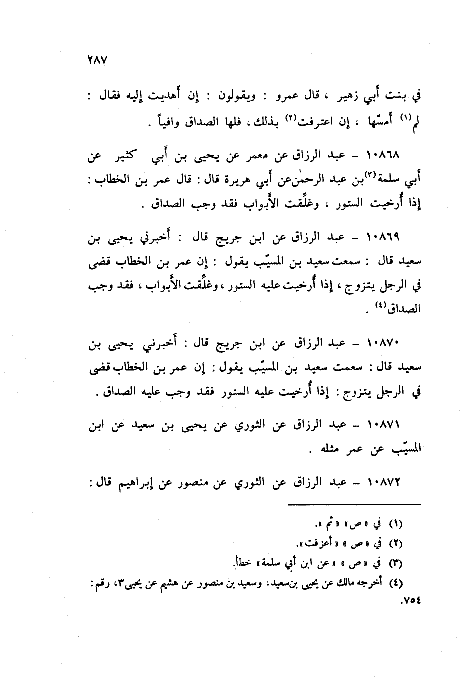 ١٠٨٧٠ - عَنِ ابْنِ جُرَيْجٍ قَالَ: أَخْبَرَنِي يَحْيَى بْنُ سَعِيدٍ قَالَ: سَمِعْتُ سَعِيدَ بْنَ الْمُسَيِّبِ يَقُولُ: إِنَّ عُمَرَ بْنَ الْخَطَّابِ «قَضَى فِي الرَّجُلِ يَتَزَوَّجُ إِذَا أُرْخِيَتْ عَلَيْهِ السُّتُورُ، فَقَدْ وَجَبَ عَلَيْهِ الصَّدَاقُ».، عَبْدُ الرَّزَّاقِ،
