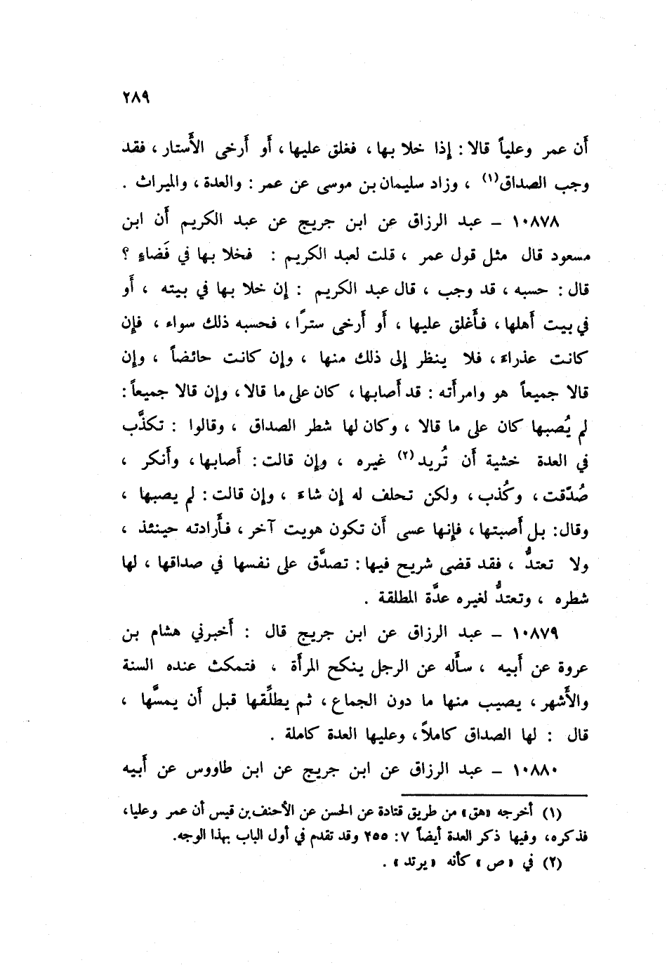 ١٠٨٨٠ - عَنِ ابْنِ جُرَيْجٍ، عَنِ ابْنِ طَاوُسٍ، عَنْ أَبِيهِ قَالَ: «لَا يَجِبُ الصَّدَاقُ وَافِيًا حَتَّى يُجَامِعَهَا، وَإِنْ أَغْلَقَ عَلَيْهَا»، قُلْتُ: وَإِذَا وَجَبَ الصَّدَاقُ وَجَبَتِ الْعِدَّةُ؟ قَالَ: وَيَقُولُ أَحَدٌ غَيْرَ ذَلِكَ؟ "
