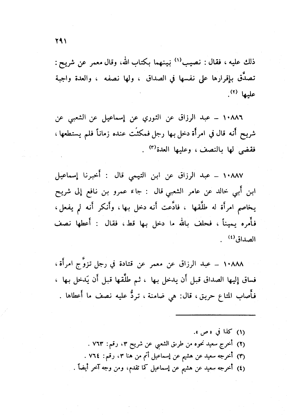 ١٠٨٨٧ - عَنِ ابْنِ التَّيْمِيِّ، أَخْبَرَنَا إِسْمَاعِيلُ بْنُ أَبِي خَالِدٍ، عَنْ عَامِرٍ الشَّعْبِيِّ قَالَ: جَاءَ عَمْرُو بْنُ نَافِعٍ إِلَى شُرَيْحٍ يُخَاصِمُ امْرَأَةً لَهُ طَلَّقَهَا فَادَّعَتْ أَنَّهُ دَخَلَ بِهَا، وَأَنْكَرَ أَنَّهُ لَمْ يَفْعَلْ، فَأَمَرَهُ يَمِينًا فَحَلَفَ بِاللَّهِ مَا دَخَلَ بِهَا قَطُّ، فَقَالَ: «أَعْطِهَا نِصْفَ الصَّدَاقِ»