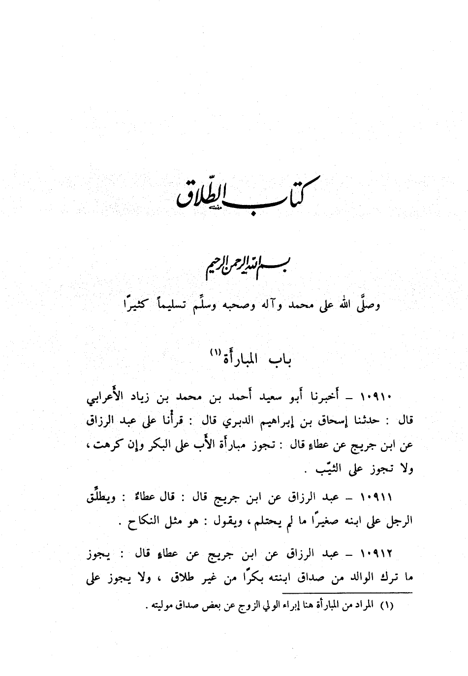١٠٩١٠ - أَخْبَرَنَا أَبُو سَعِيدٍ أَحْمَدُ بْنُ مُحَمَّدِ بْنِ زِيَادٍ الْأَعْرَابِيُّ قَالَ: حَدَّثَنَا إِسْحَاقُ بْنُ إِبْرَاهِيمَ الدَّبَرِيُّ قَالَ: قَرَأْنَا عَلَى عَبْدِ الرَّزَّاقِ، عَنِ ابْنِ جُرَيْجٍ، عَنْ عَطَاءٍ قَالَ: «تَجُوزُ مُبَارَأَةُ الْأَبِ عَلَى الْبِكْرِ وَإِنْ كَرِهَتْ، وَلَا تَجُوزُ عَلَى الثَّيِّبِ»