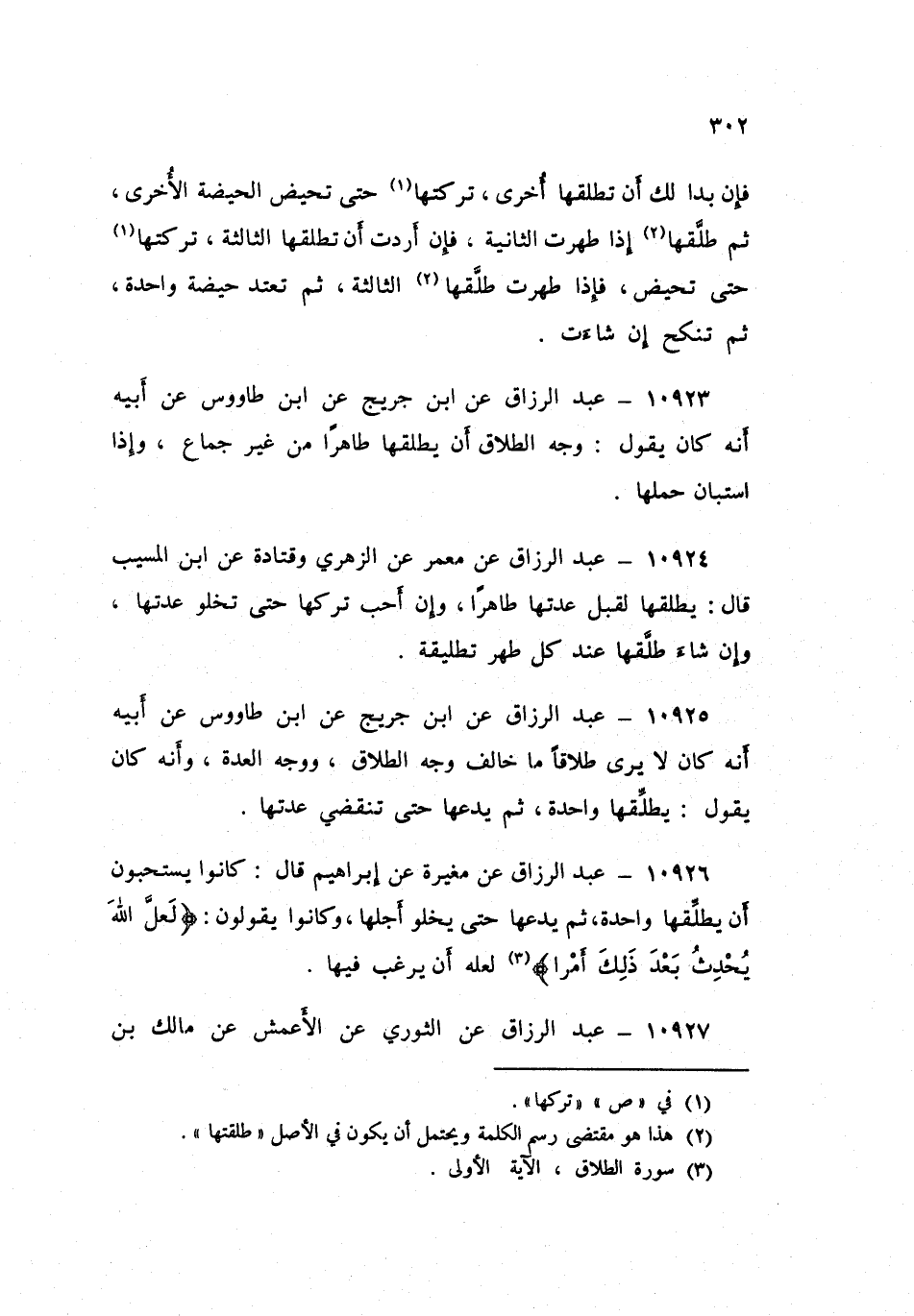 ١٠٩٢٥ - عَنِ ابْنِ جُرَيْجٍ، عَنِ ابْنِ طَاوُسٍ، عَنْ أَبِيهِ أَنَّهُ كَانَ لَا يَرَى طَلَاقًا مَا خَالَفَ وَجْهَ الطَّلَاقِ وَوَجْهَ الْعِدَّةِ، وَأَنَّهُ كَانَ يَقُولُ: «يُطَلِّقُهَا وَاحِدَةً ثُمَّ يَدَعُهَا حَتَّى تَنْقَضِيَ عِدَّتُهَا»