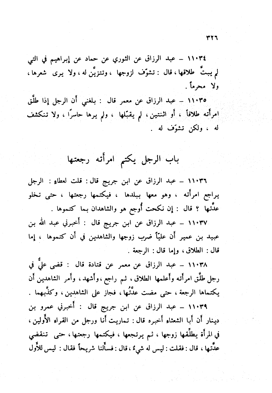 ١١٠٤٠ - عَنِ ابْنِ جُرَيْجٍ قَالَ: قُلْتُ لِعَطَاءٍ: «رَجُلٌ طَلَّقَ امْرَأَتَهُ تَطْلِيقَةً وَلَمْ يُشْهِدْ، وَلَمْ يُعْلِمْهَا، لَمْ نَرُدَّ عَلَى هَذَا»