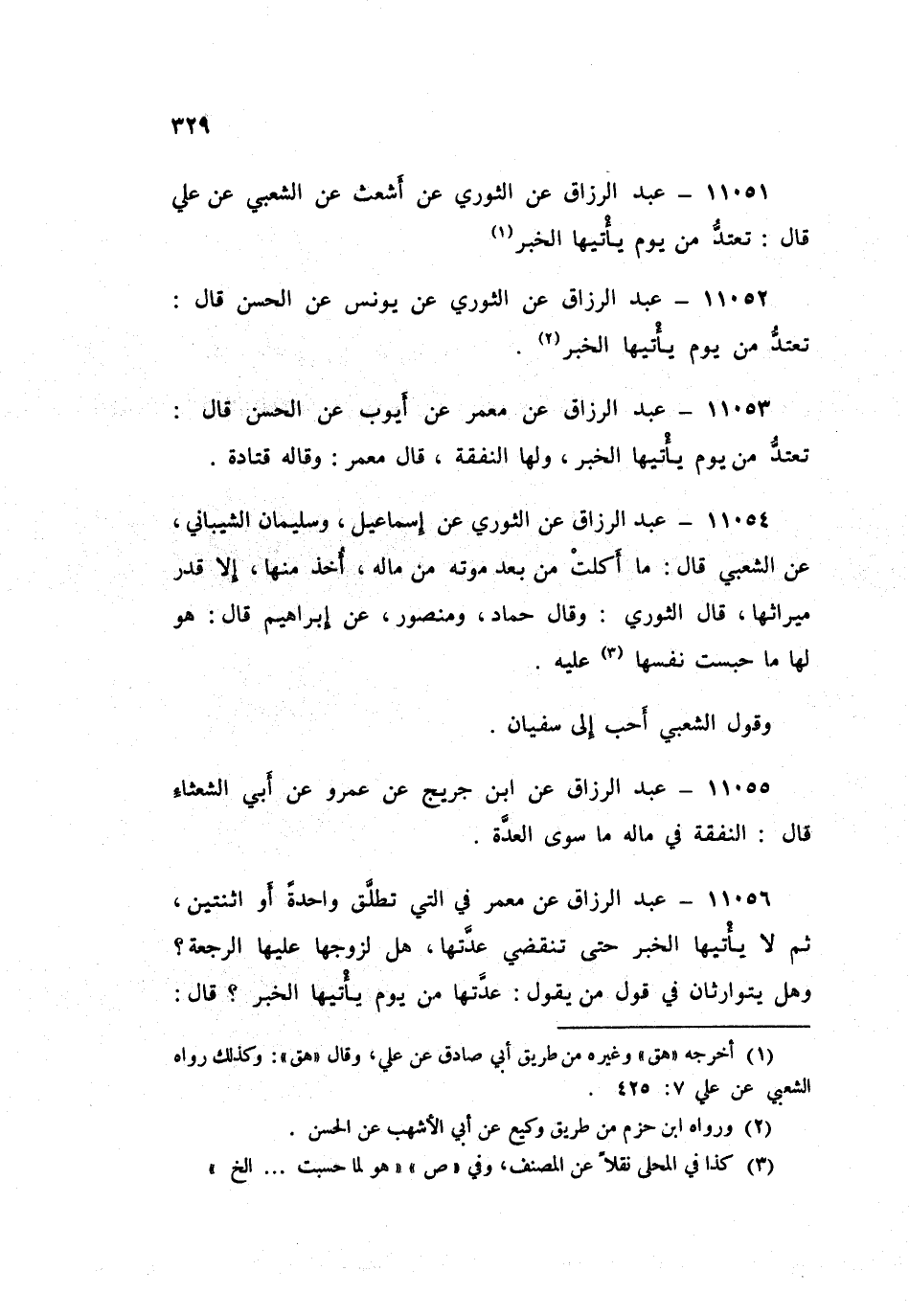 ١١٠٥٢ - عَنِ الثَّوْرِيِّ، عَنْ يُونُسَ، عَنِ الْحَسَنِ قَالَ: «تَعْتَدُّ مِنْ يَوْمِ يَأْتِيهَا الْخَبَرُ»