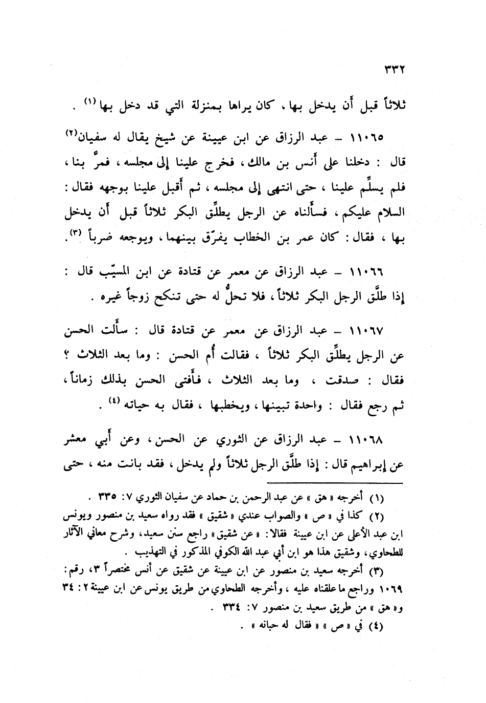 ١١٠٦٥ - عَنِ ابْنِ عُيَيْنَةَ، عَنْ شَيْخٍ يُقَالُ لَهُ سُفْيَانُ قَالَ: دَخَلْنَا عَلَى أَنَسِ بْنِ مَالِكٍ، فَخَرَجَ عَلَيْنَا إِلَى مَجْلِسِهِ، فَمَرَّ بِنَا فَلَمْ يُسَلِّمْ عَلَيْنَا حَتَّى انْتَهَى إِلَى مَجْلِسِهِ، ثُمَّ أَقْبَلَ عَلَيْنَا بِوَجْهِهِ، فَقَالَ: «السَّلَامُ عَلَيْكُمْ»، فَسَأَلْنَاهُ عَنِ الرَّجُلِ يُطَلِّقُ الْبِكْرَ ثَلَاثًا قَبْلَ أَنْ يَدْخُلَ بِهَا، فَقَالَ: «كَانَ عُمَرُ بْنُ الْخَطَّابِ يُفَرِّقُ بَيْنَهُمَا وَيُوجِعُهُ ضَرْبًا»