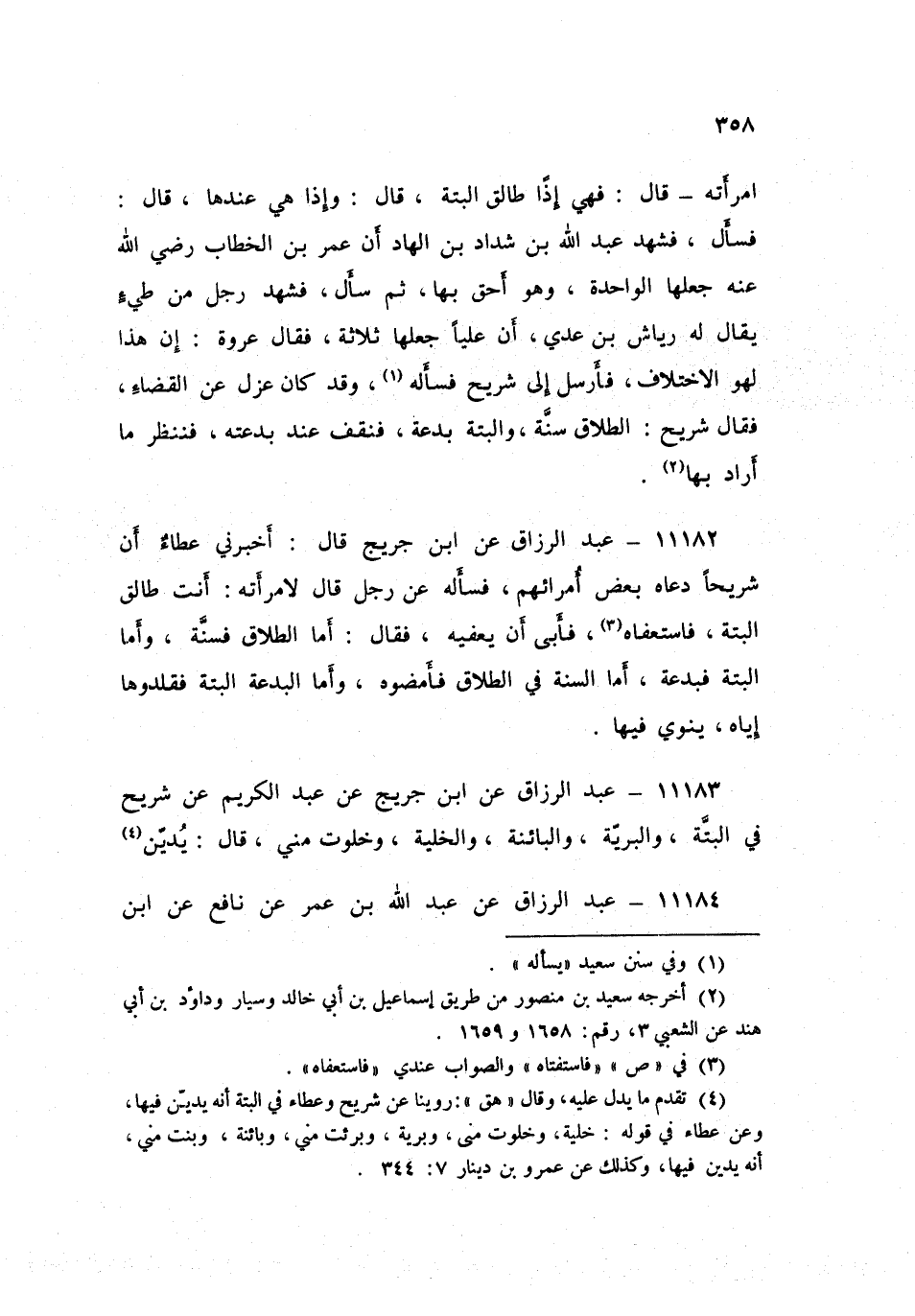١١١٨٢ - عَنِ ابْنِ جُرَيْجٍ قَالَ: أَخْبَرَنِي عَطَاءٌ، أَنَّ شُرَيْحًا دَعَاهُ بَعْضُ أُمَرَائِهِمْ فَسَأَلَهُ عَنْ رَجُلٍ قَالَ لِامْرَأَتِهِ: أَنْتِ طَالِقٌ الْبَتَّةَ، فَاسْتَعْفَاهُ، فَأَبَى أَنْ يُعْفِيَهُ، فَقَالَ: «أَمَّا الطَّلَاقُ فَسُنَّةٌ، وَأَمَّا الْبَتَّةُ فَبِدْعَةٌ، وَأَمَّا السُّنَّةُ فِي الطَّلَاقِ فَأَمْضُوهُ، وَأَمَّا الْبِدْعَةُ الْبَتَّةُ فَقَلِّدُوهَا إِيَّاهُ يَنْوِي فِيهَا»