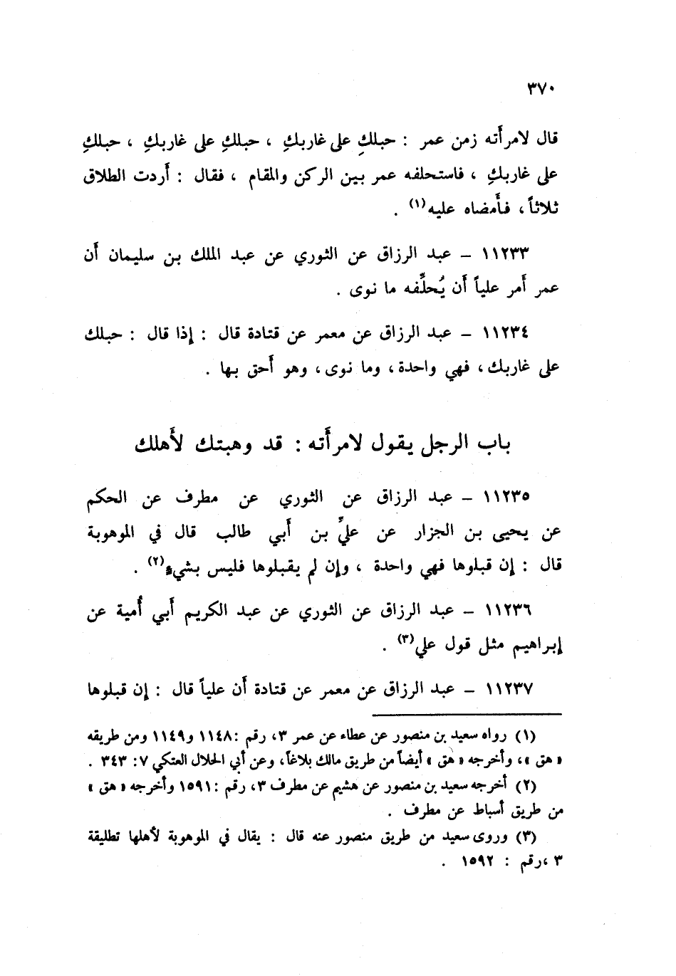 ١١٢٣٥ - عَنِ الثَّوْرِيِّ، عَنْ مُطَرِّفٍ، عَنِ الْحَكَمِ، عَنْ يَحْيَى بْنِ الْجَزَّارِ، عَنْ عَلِيِّ بْنِ أَبِي طَالِبٍ، قَالَ فِي الْمَوْهُوبَةِ قَالَ: «إِنْ قَبِلُوهَا فَهِيَ وَاحِدَةٌ، وَإِنْ لَمْ يَقْبَلُوهَا فَلَيْسَ بِشَيْءٍ». عَبْدُ الرَّزَّاقِ،