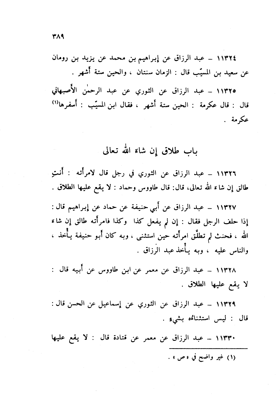 ١١٣٣٠ - عَنْ مَعْمَرٍ، عَنْ قَتَادَةَ قَالَ: «لَا يَقَعُ عَلَيْهَا الطَّلَاقُ، وَقَدْ شَاءَ اللَّهُ الطَّلَاقَ حِينَ أَحَلَّ»