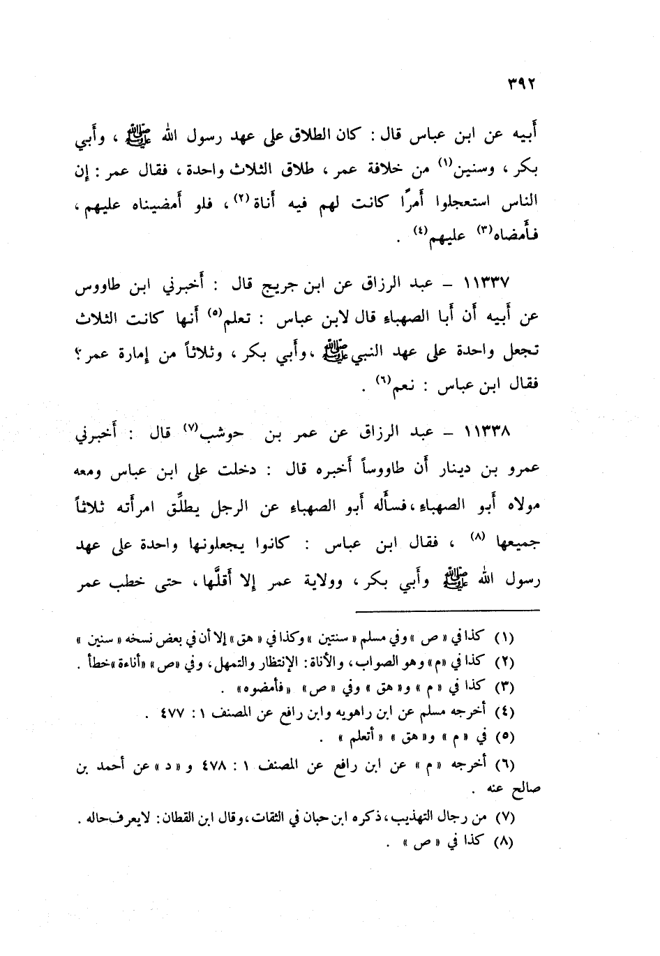 ١١٣٣٧ - عَنِ ابْنِ جُرَيْجٍ قَالَ: أَخْبَرَنِي ابْنُ طَاوُسٍ، عَنْ أَبِيهِ: أَنَّ أَبَا الصَّهْبَاءِ قَالَ لَابْنِ عَبَّاسٍ: تَعْلَمُ أَنَّهَا كَانَتِ الثَّلَاثُ تُجْعَلُ وَاحِدَةً عَلَى عَهْدِ النَّبِيِّ صَلَّى اللهُ عَلَيْهِ وَسَلَّمَ، وَأَبِي بَكْرٍ، وَثَلَاثًا مِنْ إِمَارَةِ عُمَرَ؟ فَقَالَ ابْنُ عَبَّاسٍ: «نَعَمْ»