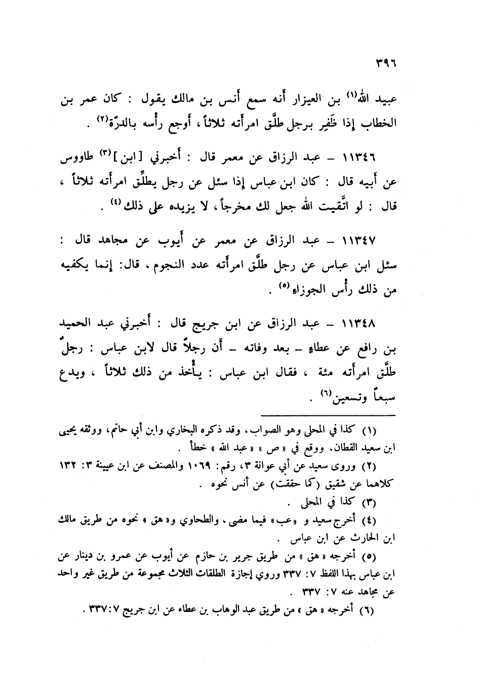 ١١٣٤٨ - عَنِ ابْنِ جُرَيْجٍ قَالَ: أَخْبَرَنِي عَبْدُ الْحَمِيدِ بْنُ رَافِعٍ، عَنْ عَطَاءٍ بَعْدَ وَفَاتِهِ، أَنَّ رَجُلًا قَالَ لَابْنِ عَبَّاسٍ: رَجُلٌ طَلَّقَ امْرَأَتَهُ مِئَةً، فَقَالَ ابْنُ عَبَّاسٍ: «يَأْخُذُ مِنْ ذَلِكَ ثَلَاثًا، وَيدَعُ سَبْعًا وَتِسْعِينَ». عَبْدُ الرَّزَّاقِ،