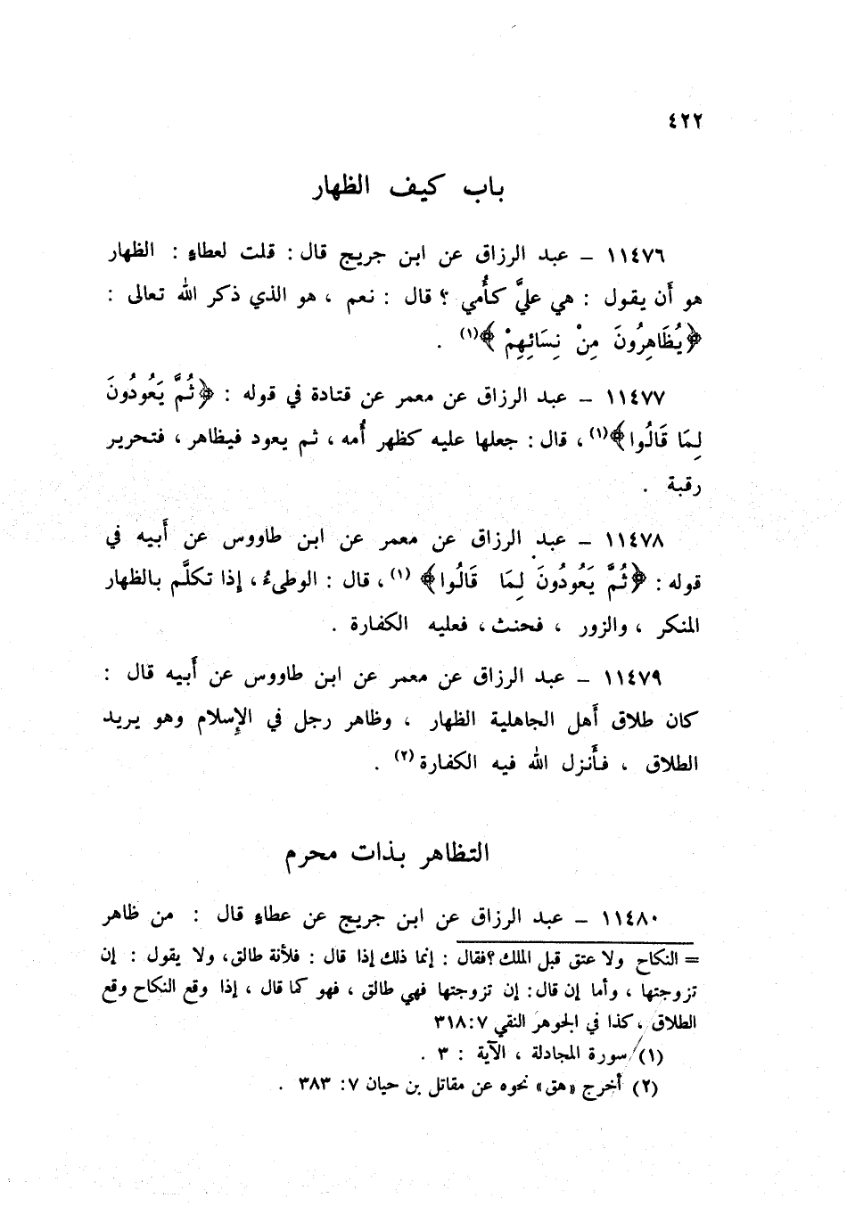 ١١٤٧٩ - عَنْ مَعْمَرٍ، عَنِ ابْنِ طَاوُسٍ، عَنْ أَبِيهِ قَالَ: «كَانَ طَلَاقُ أَهْلِ الْجَاهِلِيَّةِ الظِّهَارُ، وَظَاهَرَ رَجُلٌ فِي الْإِسْلَامِ، وَهُوَ يُرِيدُ الطَّلَاقَ، فَأَنْزَلَ اللَّهُ فِيهِ الْكَفَّارَةَ»