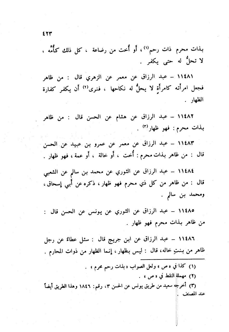 ١١٤٨٤ - عَنِ الثَّوْرِيِّ، عَنْ مُحَمَّدِ بْنِ سَالِمٍ، عَنِ الشَّعْبِيِّ قَالَ: «مَنْ ظَاهَرَ مِنْ كُلِّ ذِي مَحْرَمٍ فَهُوَ ظِهَارٌ»، ذَكَرَهُ عَنْ أَبِي إِسْحَاقَ، وَمُحَمَّدِ بْنِ سَالِمٍ