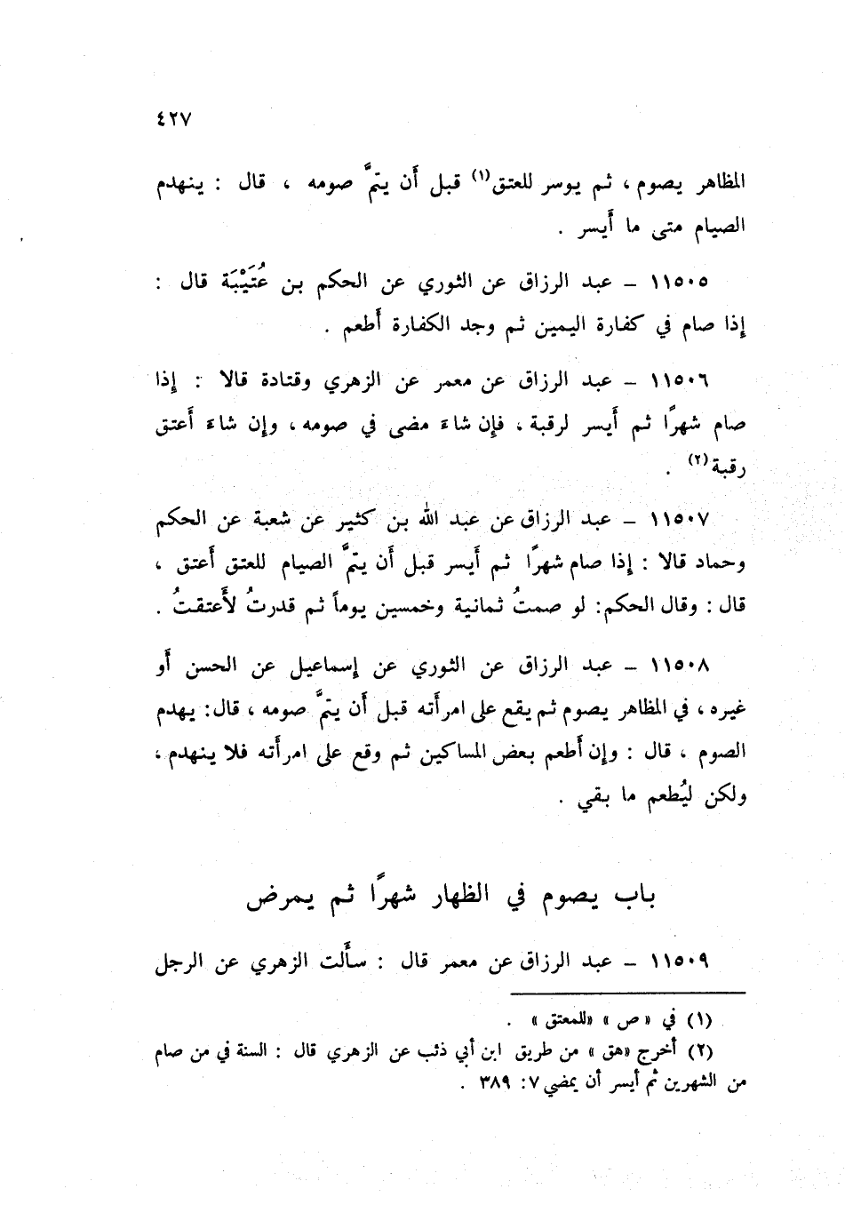١١٥٠٧ - عَنْ عَبْدِ اللَّهِ بْنِ كَثِيرٍ، عَنْ شُعْبَةَ، عَنِ الْحَكَمِ، وَحَمَّادٍ، قَالَا: «إِذَا صَامَ شَهْرًا ثُمَّ أَيْسَرَ قَبْلَ أَنْ يُتِمَّ الصِّيَامَ لِلْعِتْقِ أَعْتَقَ» قَالَ: وَقَالَ الْحَكَمُ: «لَوْ صُمْتُ ثَمَانِيَةً وَخَمْسِينَ يَوْمًا ثُمَّ قَدَرْتَ لَأَعْتَقْتُ»