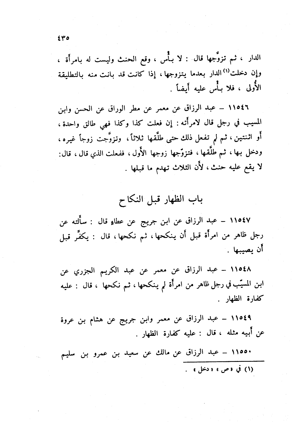 ١١٥٤٧ - عَنِ ابْنِ جُرَيْجٍ، عَنْ عَطَاءٍ قَالَ: سَأَلْتُهُ عَنْ رَجُلٍ ظَاهَرَ مِنِ امْرَأَةٍ قَبْلَ أَنْ يَنْكِحَهَا، ثُمَّ نَكَحَهَا قَالَ: «يُكَفِّرَ قَبْلَ أَنْ يُصِيبَهَا»