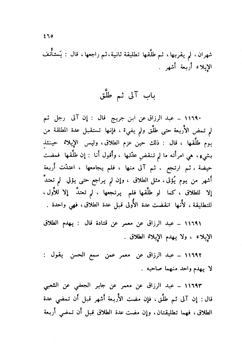 ١١٦٩٤ - عَنِ ابْنِ جُرَيْجٍ قَالَ: حُدَّثْتُ، عَنْ سَعِيدِ بْنِ جُبَيْرٍ قَالَ: «إِنْ آلَى ثُمَّ طَلَّقَ نَقَضَ الطَّلَاقُ الْإِيلَاءَ، وَإِنْ طَلَّقَ ثُمَّ آلَى فَالْإِيلَاءُ ثَابِتٌ»