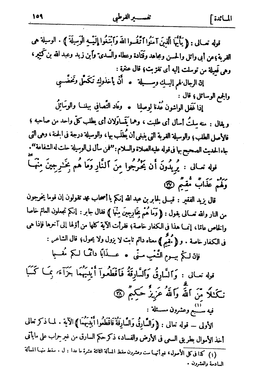 وَالسَّارِقُ وَالسَّارِقَةُ فَاقْطَعُوا أَيْدِيَهُما جَزاءً بِما كَسَبا نَكالاً مِنَ اللَّهِ وَاللَّهُ عَزِيزٌ حَكِيمٌ (٣٨)