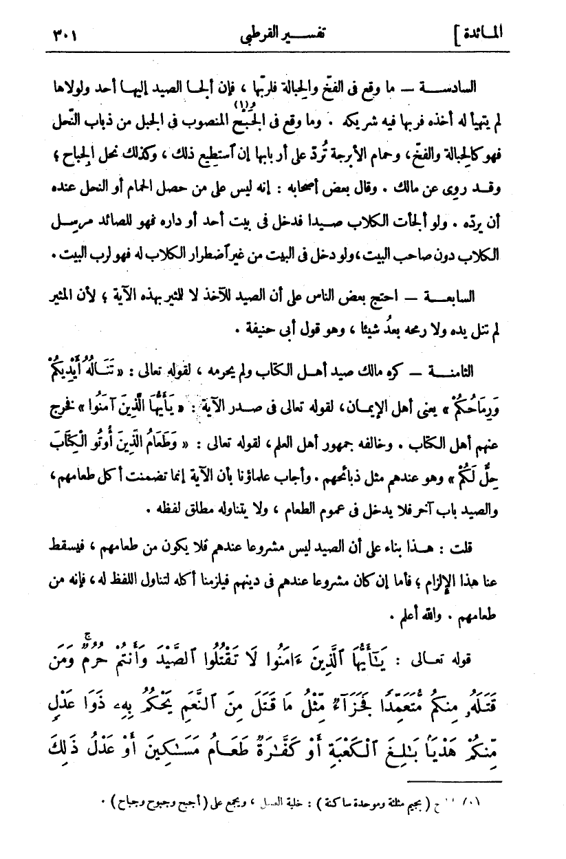 يَا أَيُّهَا الَّذِينَ آمَنُوا لَا تَقْتُلُوا الصَّيْدَ وَأَنْتُمْ حُرُمٌ وَمَنْ قَتَلَهُ مِنْكُمْ مُتَعَمِّداً فَجَزاءٌ مِثْلُ مَا قَتَلَ مِنَ النَّعَمِ يَحْكُمُ بِهِ ذَوا عَدْلٍ مِنْكُمْ هَدْياً بالِغَ الْكَعْبَةِ أَوْ كَفَّارَةٌ طَعامُ مَساكِينَ أَوْ عَدْلُ ذلِكَ صِياماً لِيَذُوقَ وَبالَ أَمْرِهِ عَفَا اللَّهُ عَمَّا سَلَفَ وَمَنْ عادَ فَيَنْتَقِمُ اللَّهُ مِنْهُ وَاللَّهُ عَزِيزٌ ذُو انْتِقامٍ (٩٥)