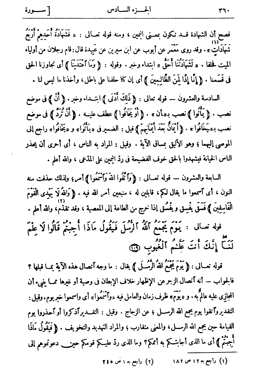 [سورة المائدة (٥): آية ١٠٩]