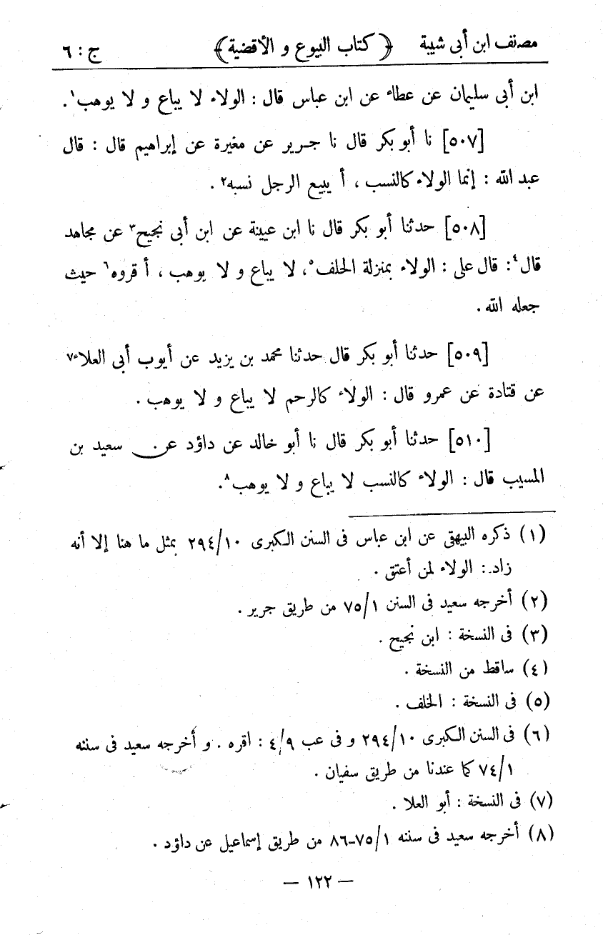 كتاب مصنف ابن أبي شيبة ط السلفية بالهند (اسم الجزء: 6)