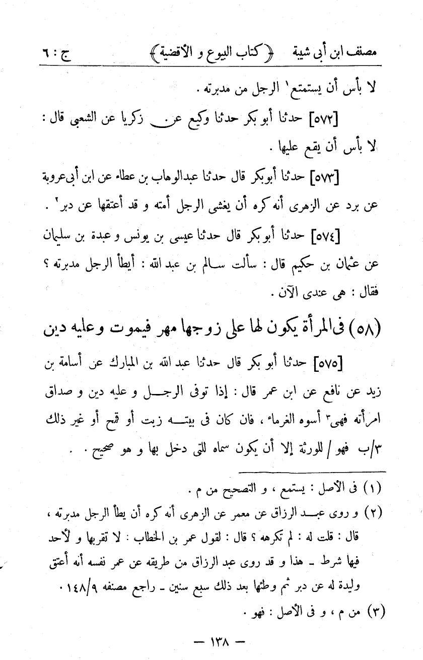 كتاب مصنف ابن أبي شيبة ط السلفية بالهند (اسم الجزء: 6)