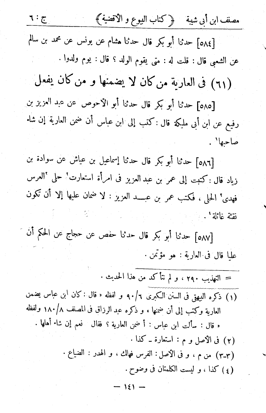 كتاب مصنف ابن أبي شيبة ط السلفية بالهند (اسم الجزء: 6)
