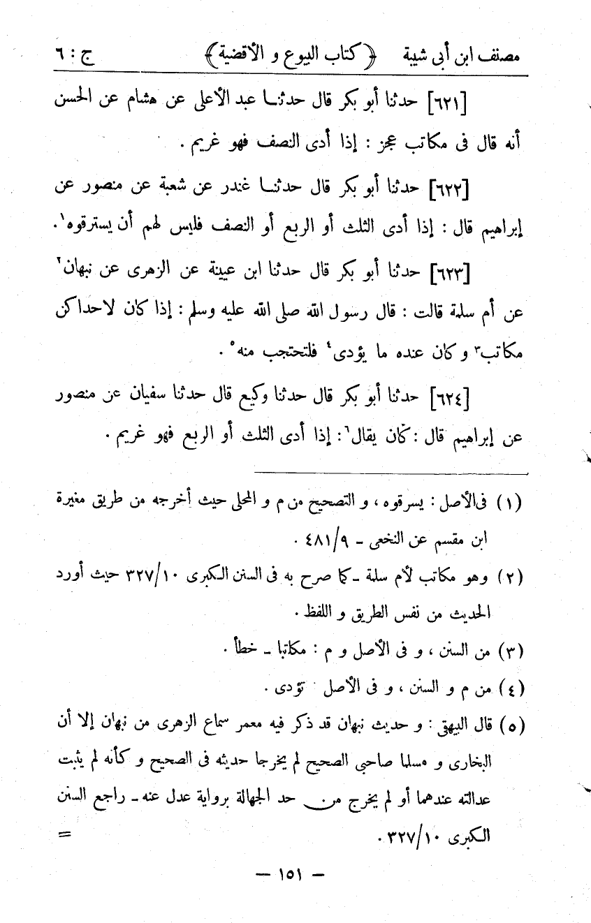 كتاب مصنف ابن أبي شيبة ط السلفية بالهند (اسم الجزء: 6)