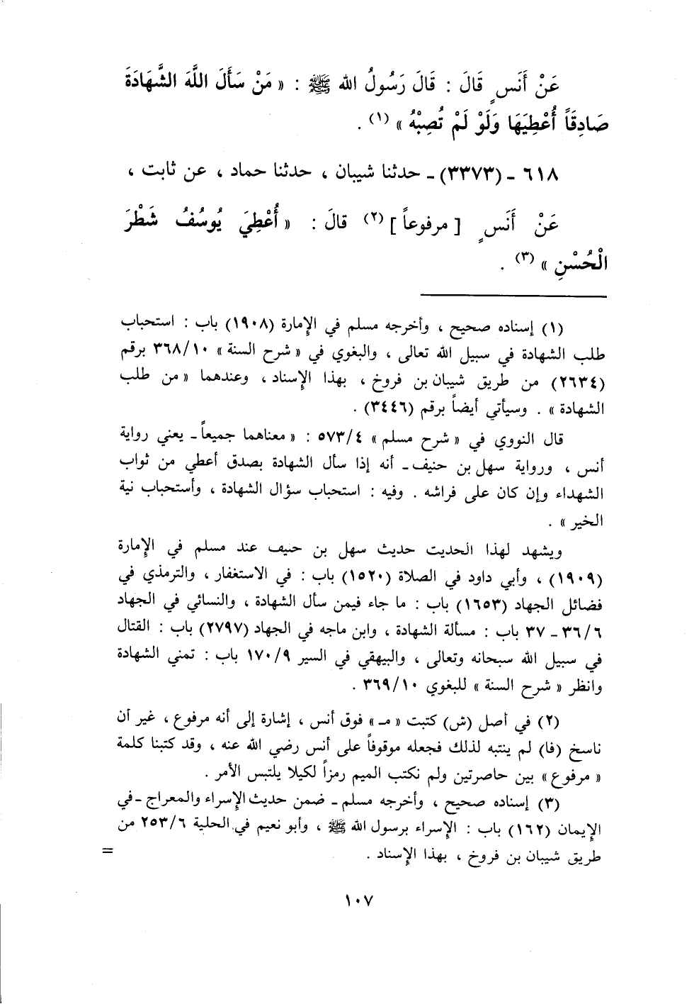 3373 - حَدَّثَنَا شَيْبَانُ، حَدَّثَنَا حَمَّادٌ، عَنْ ثَابِتٍ، عَنْ أَنَسٍ - مَرْفُوعًا - قَالَ: «§أُعْطِيَ يُوسُفُ شَطْرَ الْحَسَنِ» Kإسناده صحيح