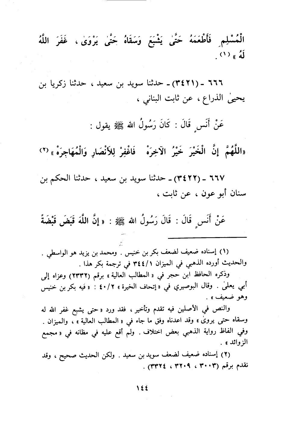 3421 - حَدَّثَنَا سُوَيْدُ بْنُ سَعِيدٍ، حَدَّثَنَا زَكَرِيَّا بْنُ يَحْيَى الذِّرَاعُ، عَنْ ثَابِتٍ الْبُنَانِيِّ، عَنْ أَنَسٍ، قَالَ: كَانَ رَسُولُ اللَّهِ صَلَّى اللهُ عَلَيْهِ وَسَلَّمَ يَقُولُ: «§اللَّهُمَّ إِنَّ الْخَيْرَ خَيْرُ الْآخِرَهْ، فَاغْفِرْ لِلْأَنْصَارِ وَالْمُهَاجِرَهْ» Kإسناده ضعيف