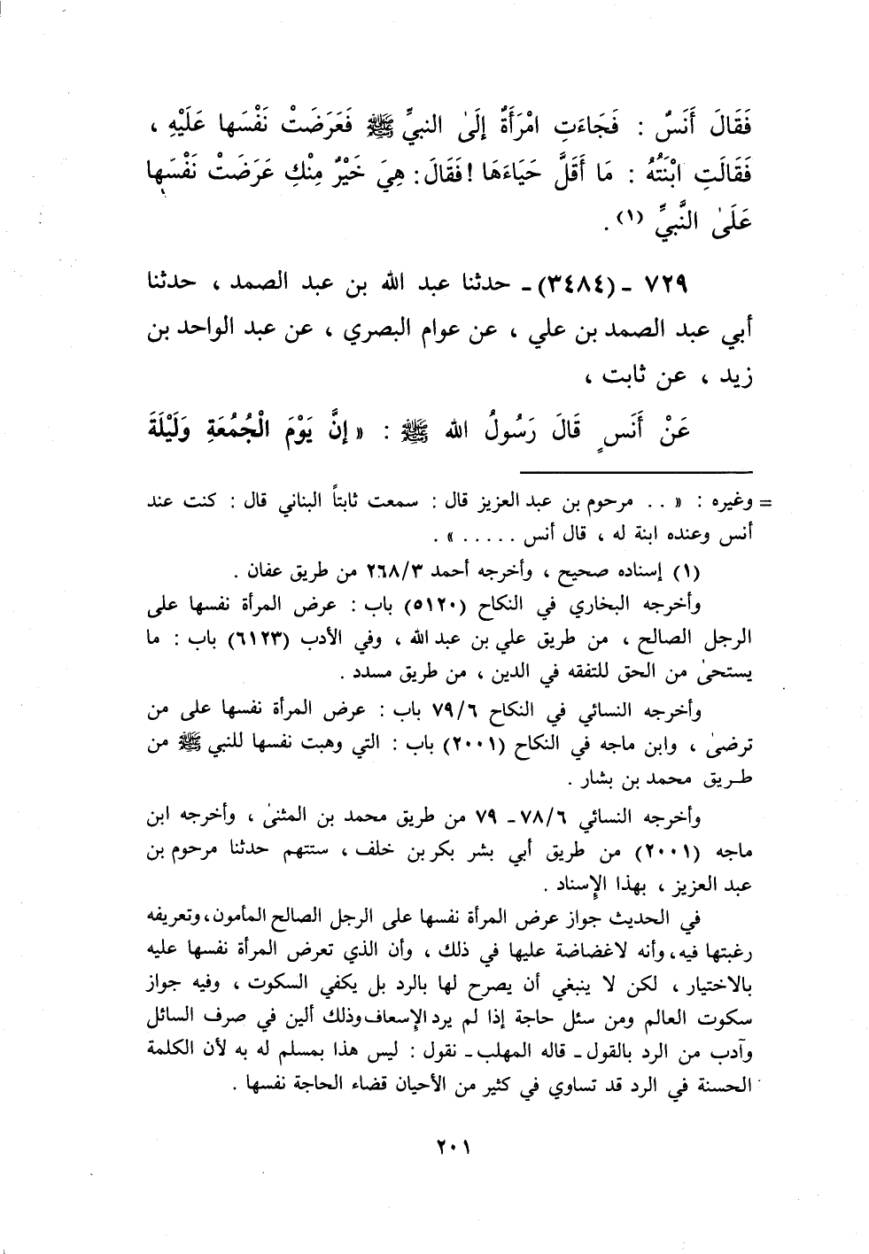 3484 - حَدَّثَنَا عَبْدُ اللَّهِ بْنُ عَبْدِ الصَّمَدِ، حَدَّثَنَا أَبِي عَبْدُ الصَّمَدِ بْنُ عَلِيٍّ، عَنْ عَوَّامٍ الْبَصْرِيِّ، عَنْ عَبْدِ الْوَاحِدِ بْنِ زَيْدٍ، عَنْ ثَابِتٍ، عَنْ أَنَسٍ، قَالَ رَسُولُ اللَّهِ صَلَّى اللهُ عَلَيْهِ وَسَلَّمَ: «إِنَّ §يَوْمَ الْجُمُعَةَ وَلَيْلَةَ الْجُمُعَةِ أَرْبَعَةٌ وَعِشْرُونَ سَاعَةً، لَيْسَ فِيهَا سَاعَةٌ إِلَّا وَلِلَّهِ فِيهَا سِتُّمِائَةِ عَتِيقٍ مِنَ النَّارِ» قَالَ: ثُمَّ خَرَجْنَا مِنْ عِنْدِهِ فَدَخَلْنَا عَلَى الْحَسَنِ فَذَكَرْنَا لَهُ حَدِيثَ ثَابِتٍ، فَقَالَ: سَمِعْتُهُ، وَزَادَ فِيهِ: «كُلُّهُمْ قَدِ اسْتَوْجَبَ النَّارَ» Kإسناده تالف