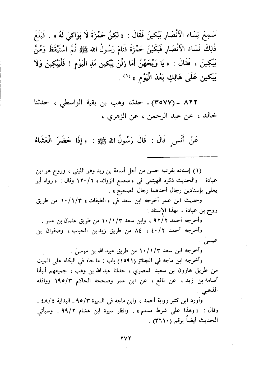 3577 - حَدَّثَنَا وَهْبُ بْنُ بَقِيَّةَ الْوَاسِطِيُّ، حَدَّثَنَا خَالِدٌ، عَنْ عَبْدِ الرَّحْمَنِ، عَنِ الزُّهْرِيِّ، عَنْ أَنَسٍ، قَالَ: قَالَ رَسُولُ اللَّهِ صَلَّى اللهُ عَلَيْهِ وَسَلَّمَ: «§إِذَا حَضَرَ الْعَشَاءُ وَأُقِيمَتِ الصَّلَاةُ فَابْدَءُوا بِهِ، وَلَا تَعْجَلُوا عَنْ عَشَائِكُمْ» Kإسناده صحيح