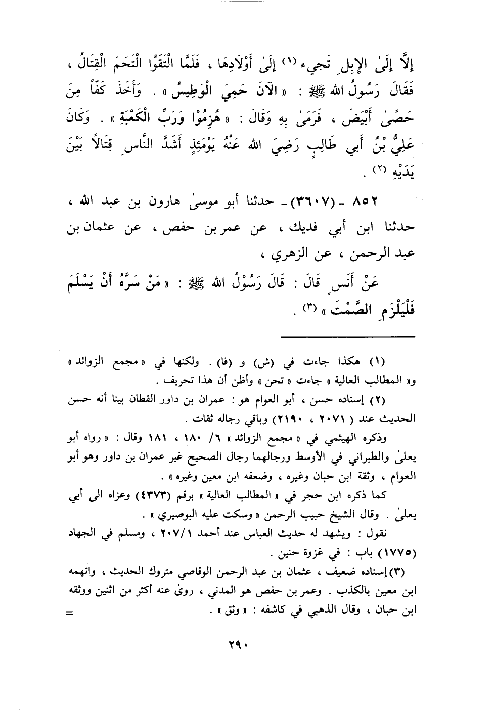 3607 - حَدَّثَنَا أَبُو مُوسَى، هَارُونُ بْنُ عَبْدِ اللَّهِ، حَدَّثَنَا ابْنُ أَبِي فُدَيْكٍ، عَنْ عُمَرَ بْنِ حَفْصٍ، عَنْ عُثْمَانَ بْنِ عَبْدِ الرَّحْمَنِ، عَنِ الزُّهْرِيِّ، عَنْ أَنَسٍ قَالَ: قَالَ رَسُولُ اللَّهِ صَلَّى اللهُ عَلَيْهِ وَسَلَّمَ: «§مَنْ سَرَّهُ أَنْ يَسْلَمَ فَلْيَلْزَمِ الصَّمْتَ» Kإسناده ضعيف