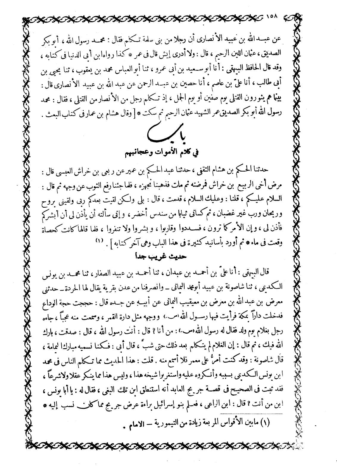 بَابٌ فِي كَلَامِ الْأَمْوَاتِ وَعَجَائِبِهِمْ