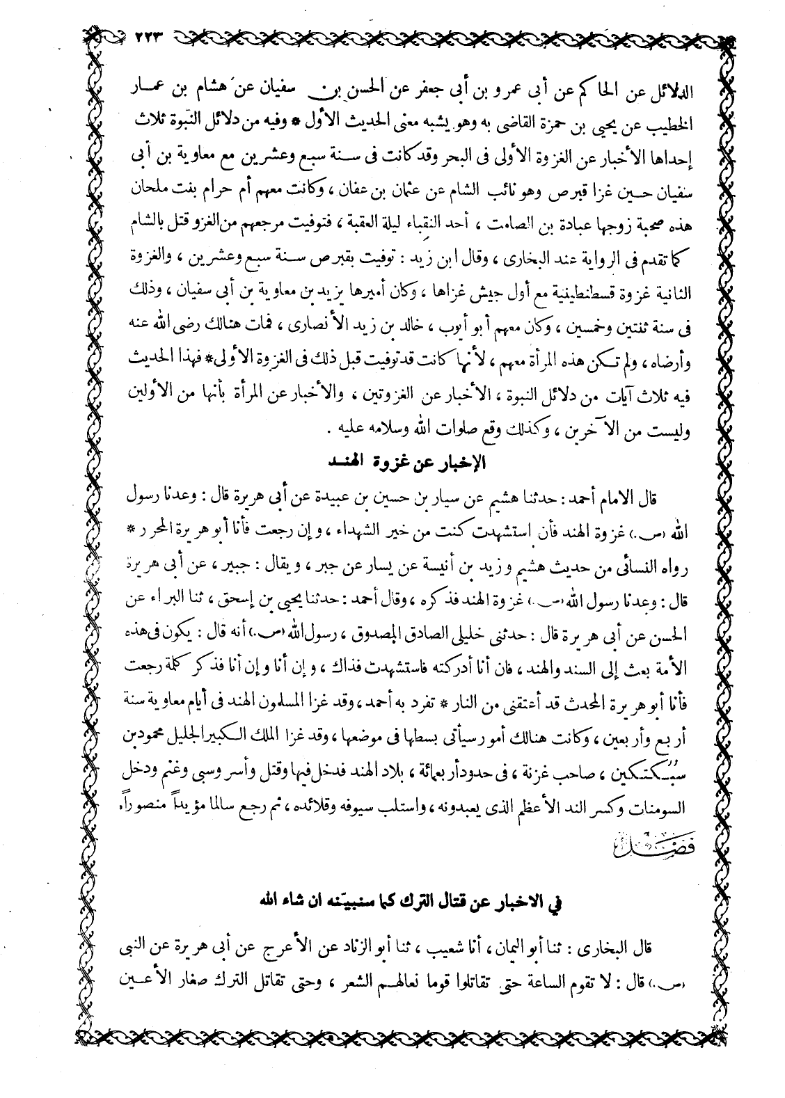 فَصْلٌ فِي الْإِخْبَارِ عَنْ قِتَالِ التُّرْكِ كَمَا سنبينه إن شاء الله وبه الثقة